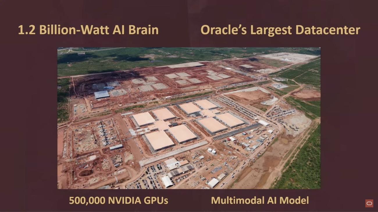 エリソン氏は、人間の脳が20ワットという低消費電力で860億のニューロンを動かすのに対し、大規模AIクラスターは12億ワットという膨大な電力を消費すると説明した。「これは米国の100万戸の家庭に電力を供給できる規模だ」。オラクルがテキサス州アビリーンに建設中のデータセンターは、完成時には45万個以上のNVIDIA GB200を搭載する計画だという。