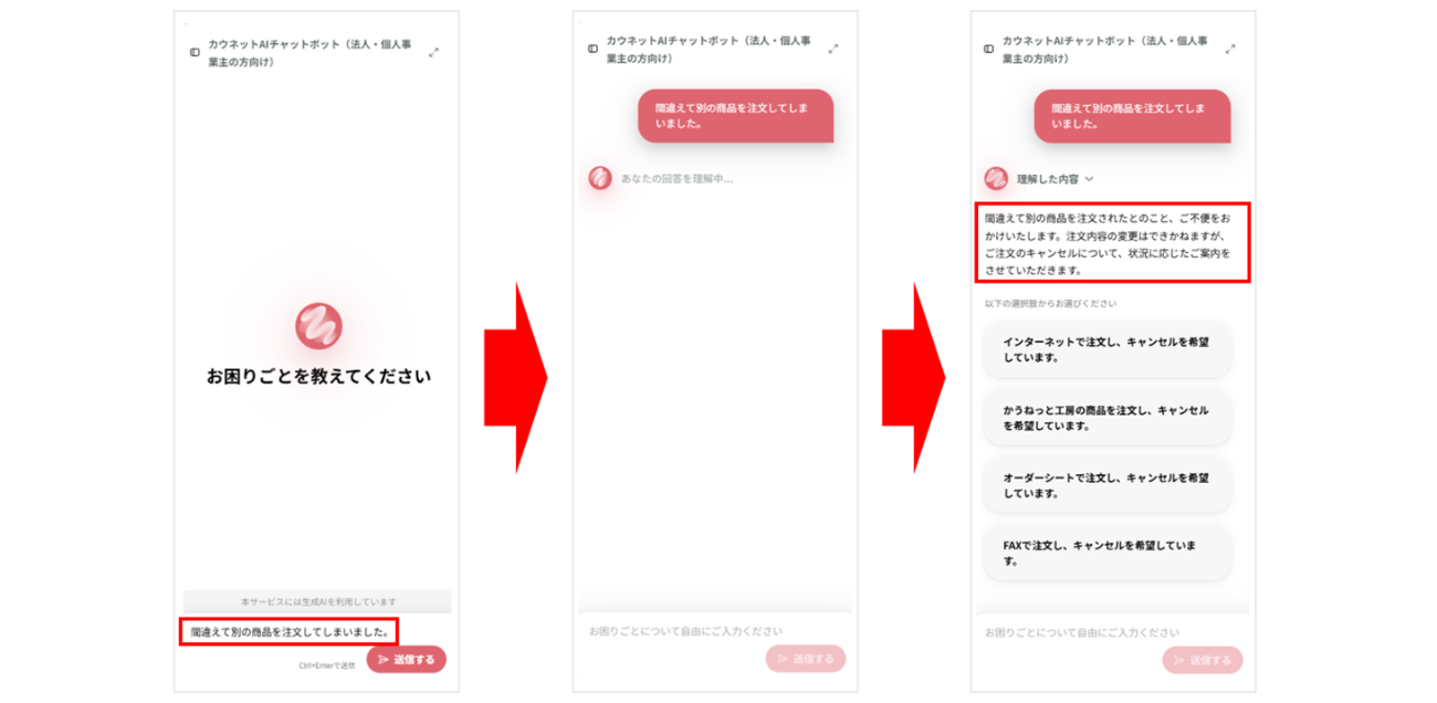 対話を通じて顧客の意図を正確に理解し、必要に応じてヒアリングを重ねながら最適な回答へと導く。