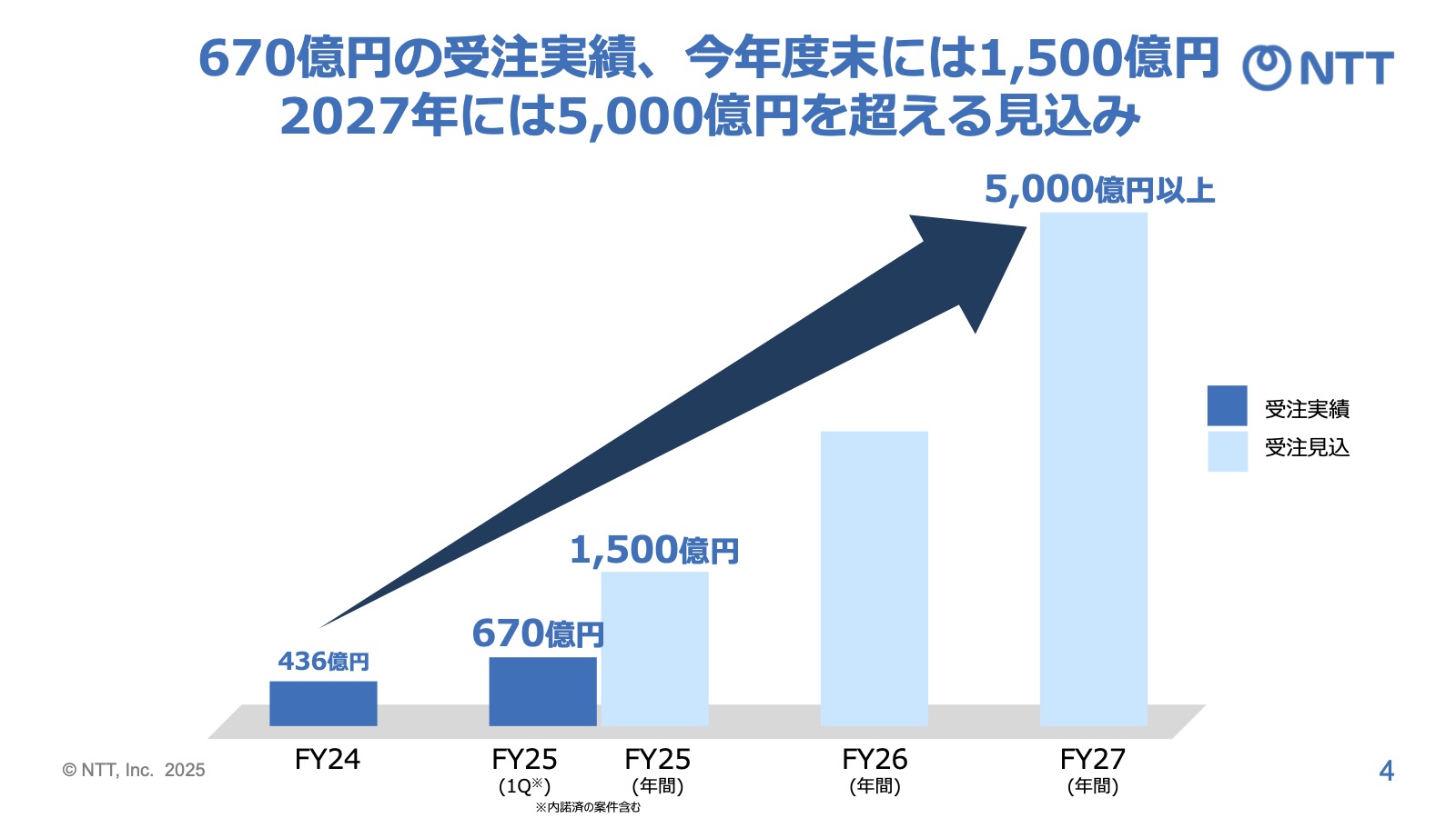 受注金額の伸びはさらに顕著だ。2024年度1年間では436億円だったが、今年度は第1四半期の3ヵ月間で既に670億円に達した。島田社長は「このペースで推移すれば、今年度末には1,500億円、2027年度には年間5,000億円を超える見込み」と力強い成長見通しを示した。