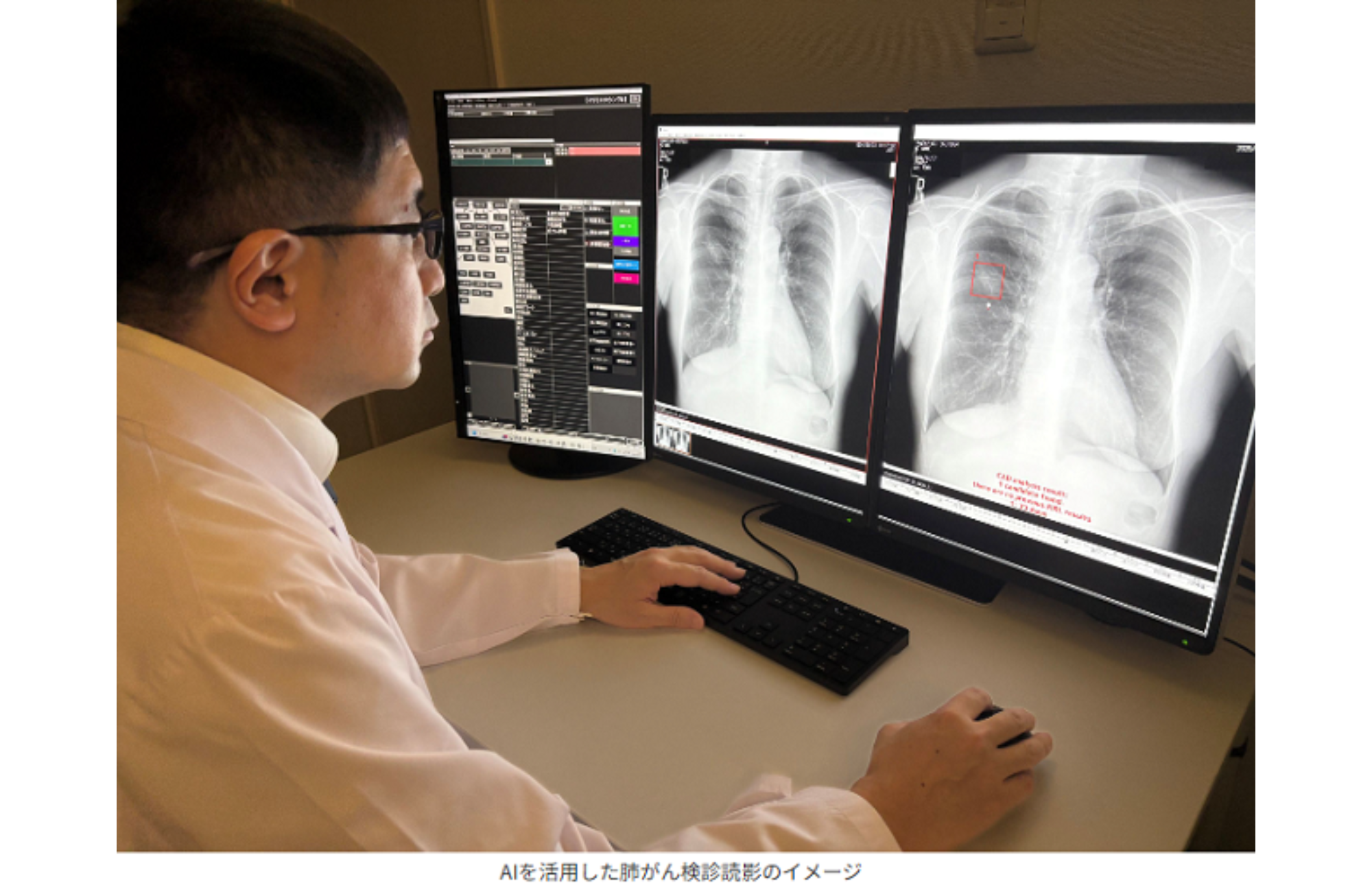 肺がん検診では、胸部X線画像の読影を行う医師の確保が難しくなっている。厚生労働省の指針では「2名以上の医師による二重読影」が推奨されているが、人材確保の困難から、AI技術との併用による効率化が期待されている。