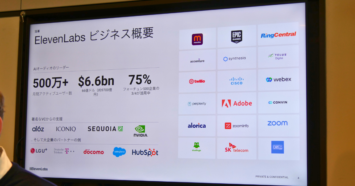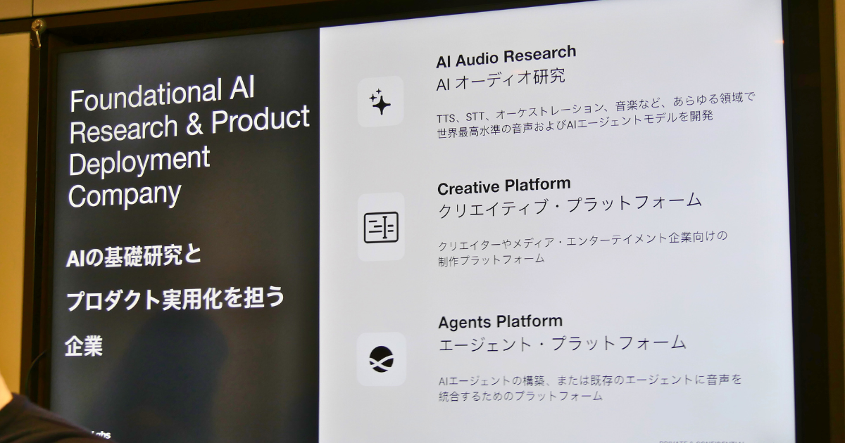 11月18日、Mati Staniszewski氏が来日し記者向けの説明会を開いた。同氏によれば、日本向けにセールスチームやエンジニアを投入し、日本語に特化したAIモデルを作っているとのことだ。