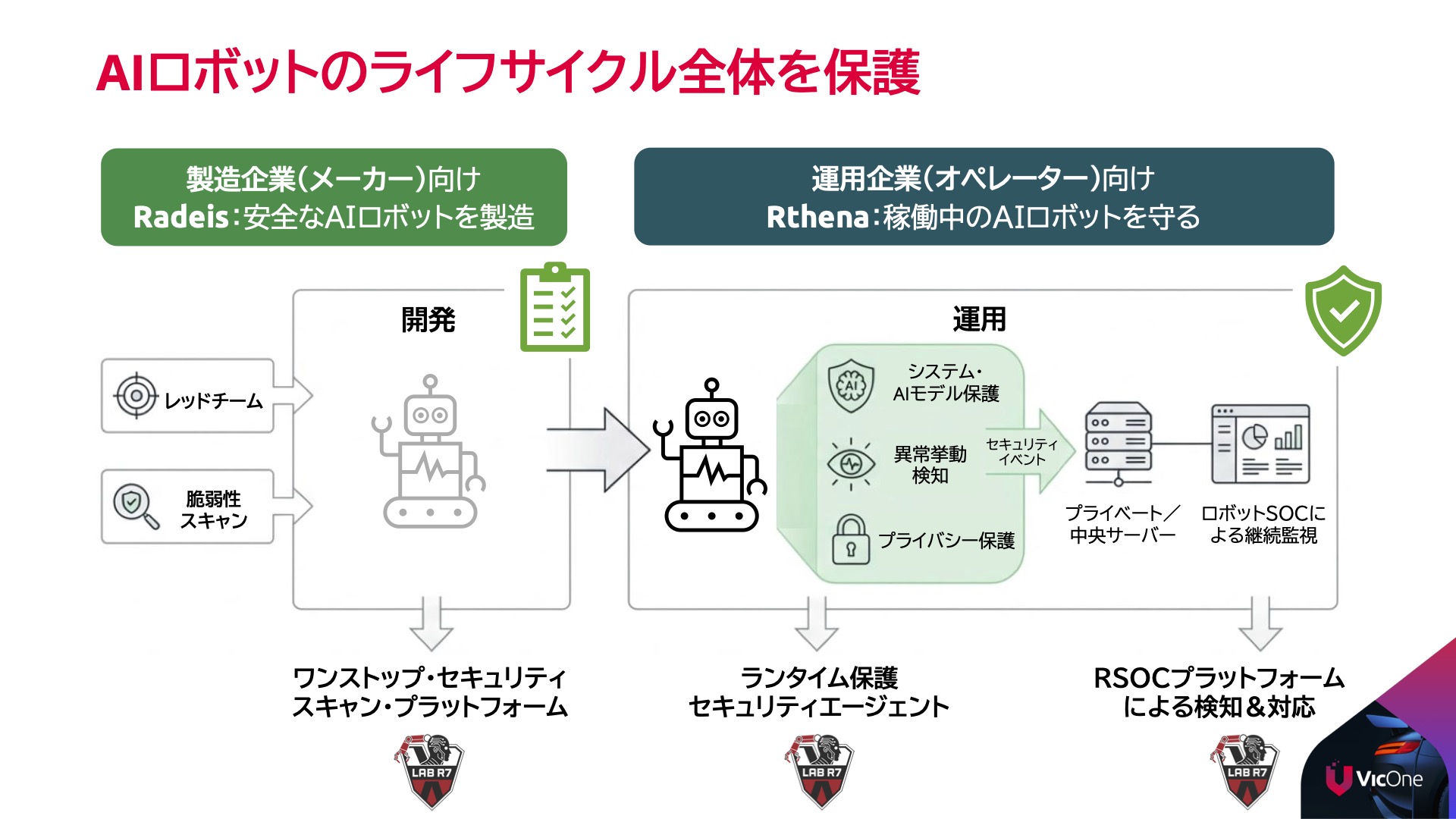 こうした多岐にわたる脅威に対し、業界各社はどのような対策を講じているのか。VicOneは、自動車サイバーセキュリティで培った知見を活かし、ロボットのライフサイクル全体をカバーする防御アプローチの開発を進めている。