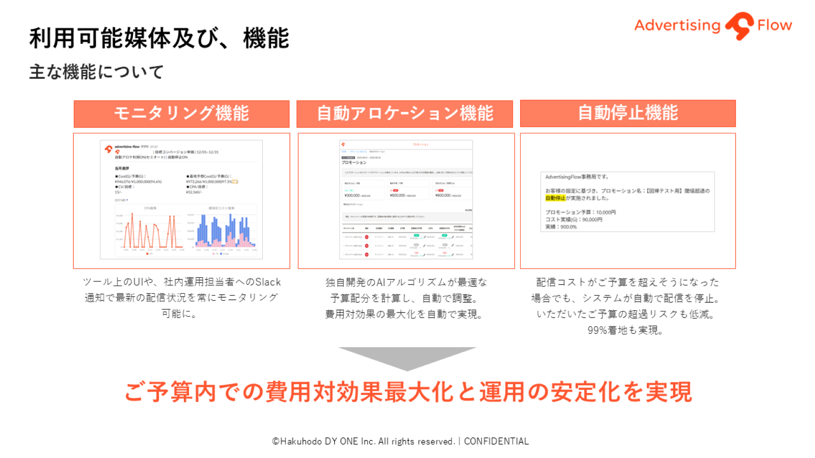 ――では、具体的なツールについてうかがいます。まず、運用の自動化を支援する「Advertising Flow(アドバタイジングフロー)」は、どういった点に優位性がありますか?