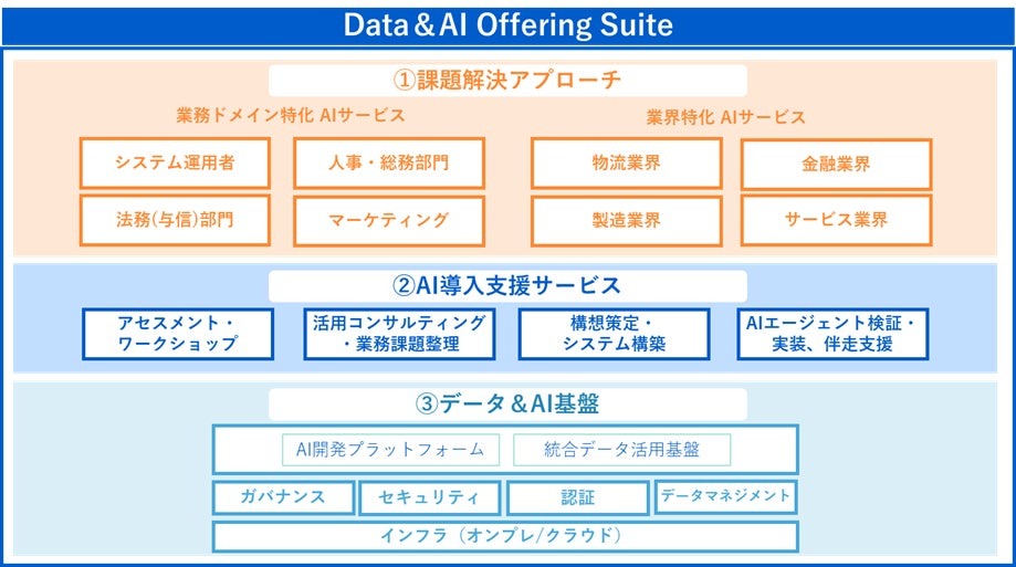 • データ&AI基盤:オンプレミスとクラウドを組み合わせ、既存システムやクラウドに散在するデータを統合する基盤を構築。AIエージェントを安全かつ効率的に活用しながら、コスト最適化とデータ保護やガバナンスの両立を目指す
