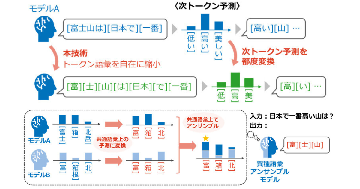 NTTが、大規模言語モデル(LLM)における入出力単位「トークン」の語彙を精度劣化なく縮小させ、異なるLLM間でもトークン語彙を共通化できる推論技術を確立した。
